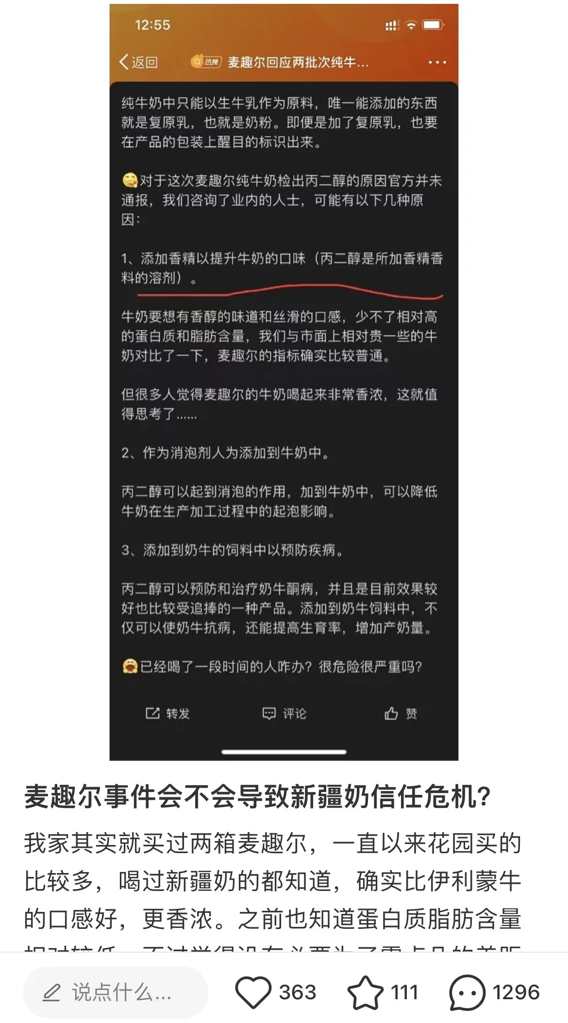 一石激起千层浪,麦趣尔牛奶事件仍在持续发酵。