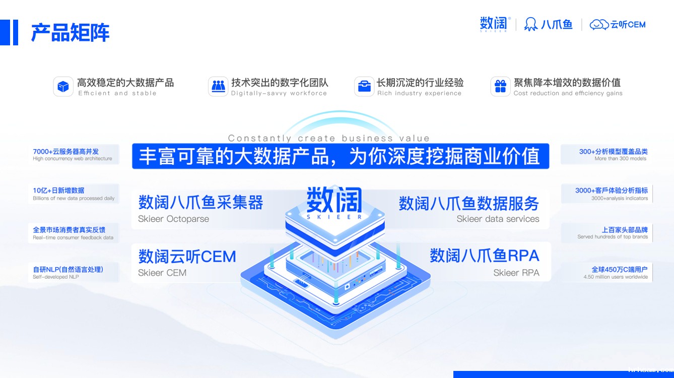 十余年的深耕下,taptap亚洲构筑起taptap亚洲八爪鱼采集器、taptap亚洲云听CEM、taptap亚洲八爪鱼RPA和taptap亚洲八爪鱼数据服务四大核心产品和服务,正为全球数百家标杆企业和450万C端用户提供优质的大数据服务。