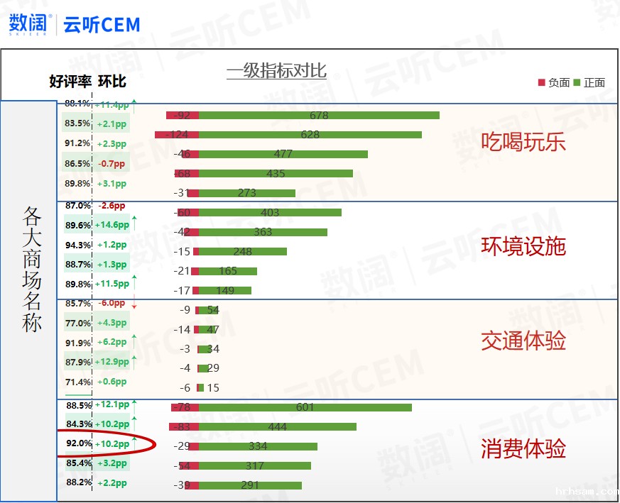 比如“环境设施”之下,“规模大小、布局设计、环境噪音、无障碍设施、空调温度”等多层指标能将消费者反馈清晰定位到对商场环境的哪一方面不满意;