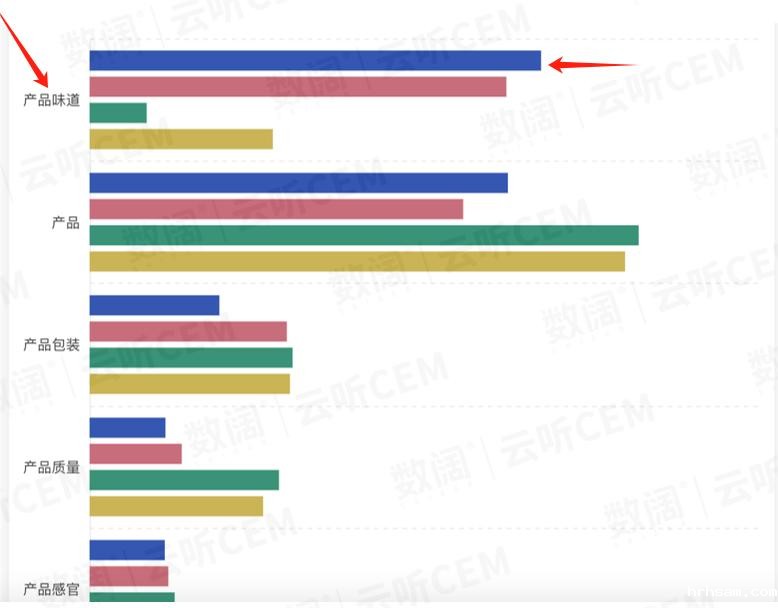 在产品多维对比中,它发现,Q品牌的新品在“产品味道”指标的正面反馈率,要高于A、B、C这3款竞品产品。