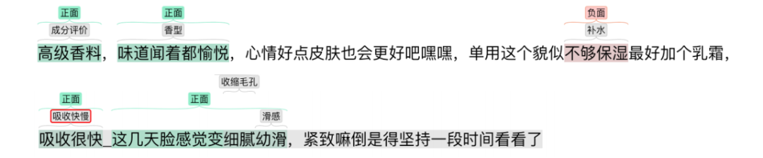 NLP技术自动识别这条电商评论中包含了哪些几个产品指标,并判断它是正or负面。