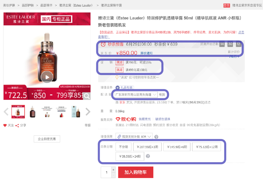 价格、优惠券、平台券、店铺券、促销信息、赠品、销量、库存、挂牌价、到手价、拼单价、分期信息。