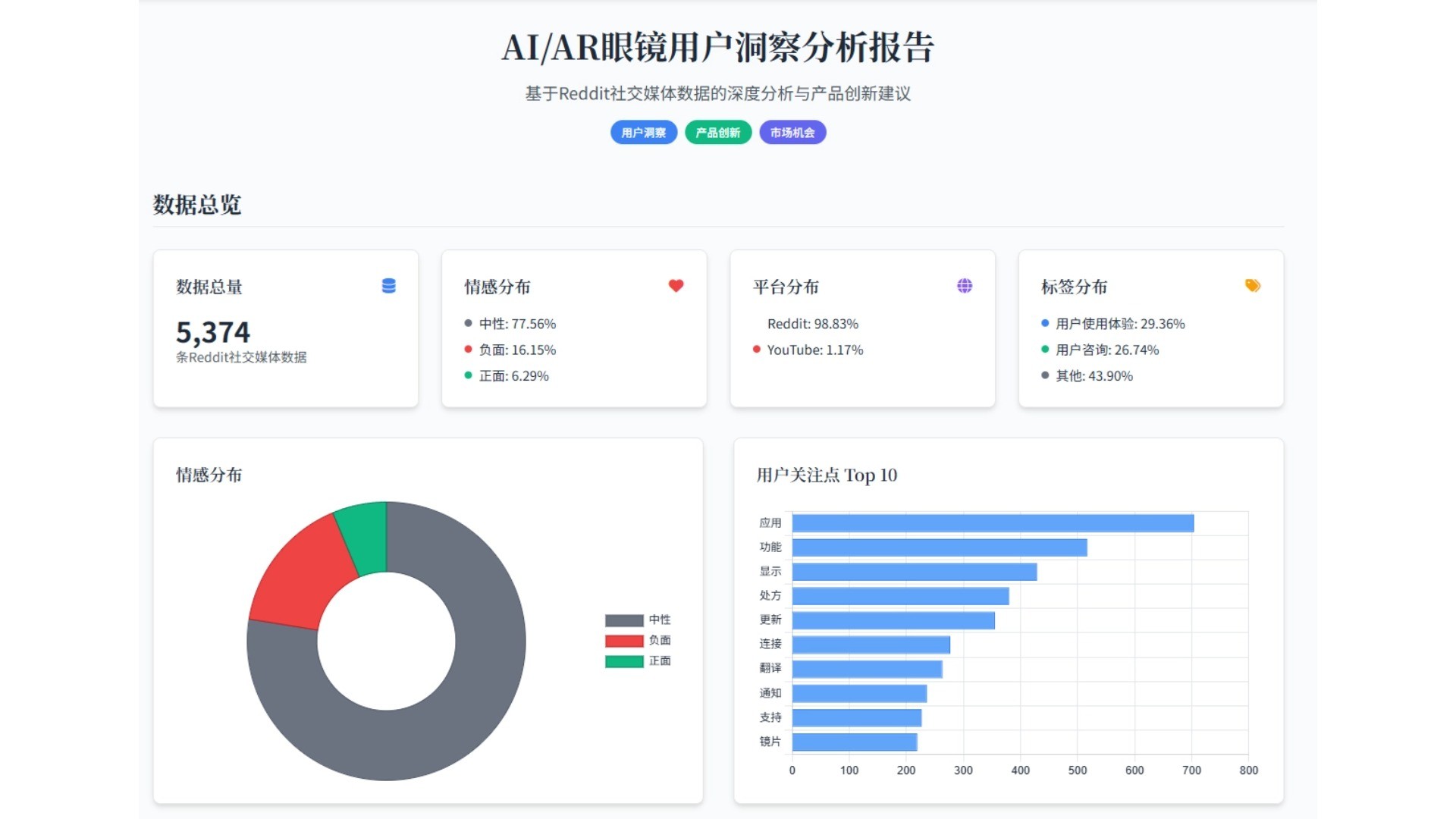 聚焦用户接触产品后的直观感受,重点收集 “视觉、佩戴、音质” 等感官层面的反馈,比如 “白色款颜值高但易脏”“耳罩软,戴半小时不压耳”等具象评价,快速掌握用户对产品表层体验的真实感受。