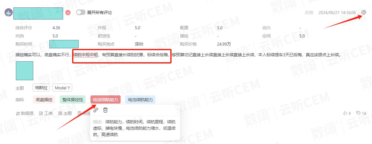 用户对产品的指标差评下钻主要集中在空间大小、续航和ADAS系统等方面。因此,特斯拉需要针对这些问题进行技术研发和产品优化,以提高产品质量和竞争力。