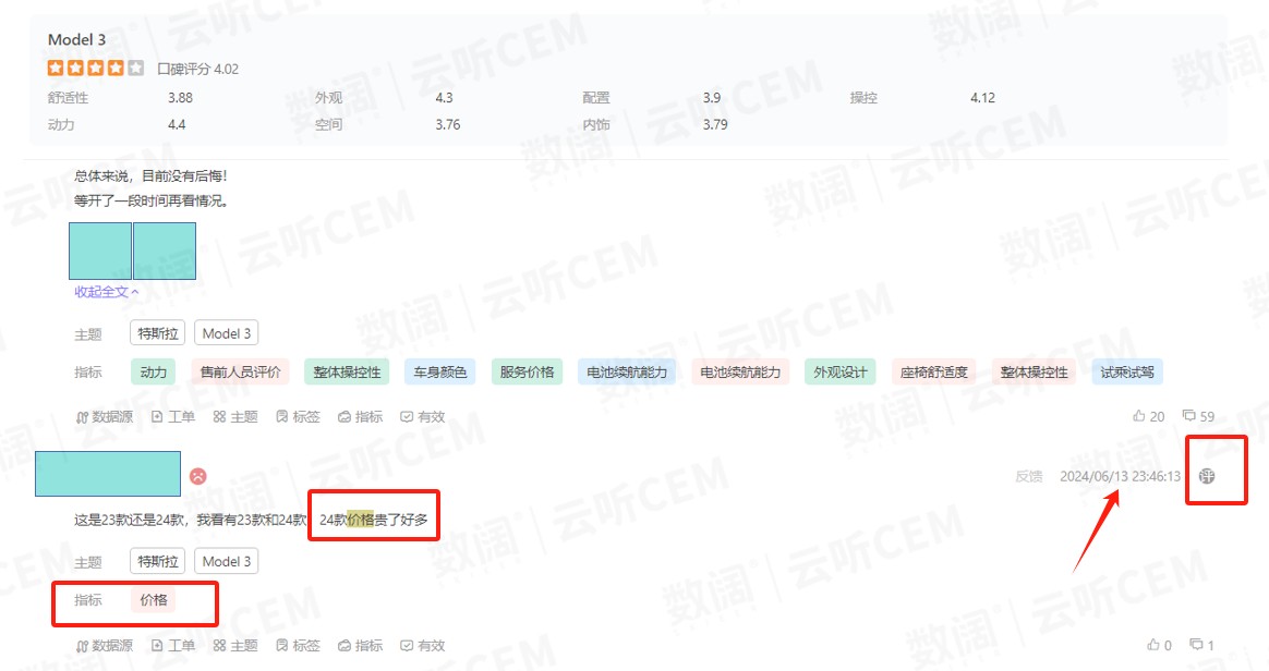 我们通过taptap亚洲云听CEM,从汽车类社媒平台、口碑平台和问答平台上,收集了特斯拉旗下两款车型共81,366条用户公开分享/评论数据,并进行了清洗和预处理,保留了有效的正面和负面消息供进一步分析。