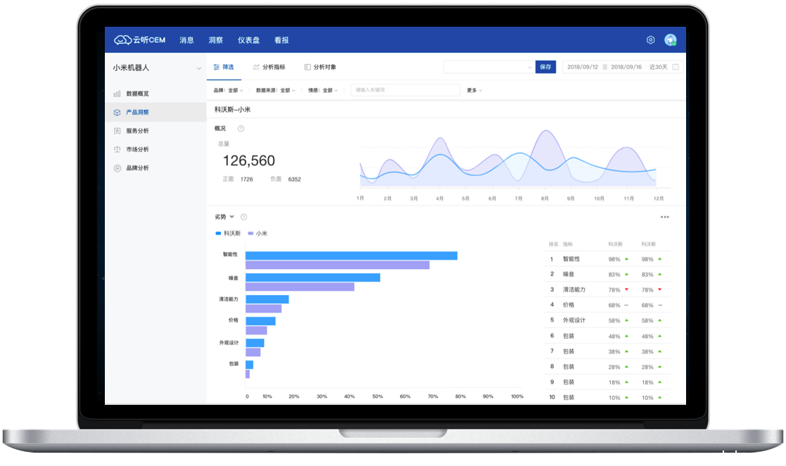 云听CEM (Customer Experience Management) 是国内一站式客户体验管理SaaS平台,利用人工智能技术(DL、NLP),帮助品牌聚合包括本品、竞品的全网及其内部全渠道客户反馈数据(电商平台、社交媒体、客服会话、调查问卷等),分析消费者的关注点、吐槽点、情感偏好、使用场景等,发现产品、服务存在的问题和机会点,为产品、客服、市场、电商、品牌等部门提供业务优化建议,从而提升全链路客户体验,赢得消费者忠诚,实现品牌持续增长。