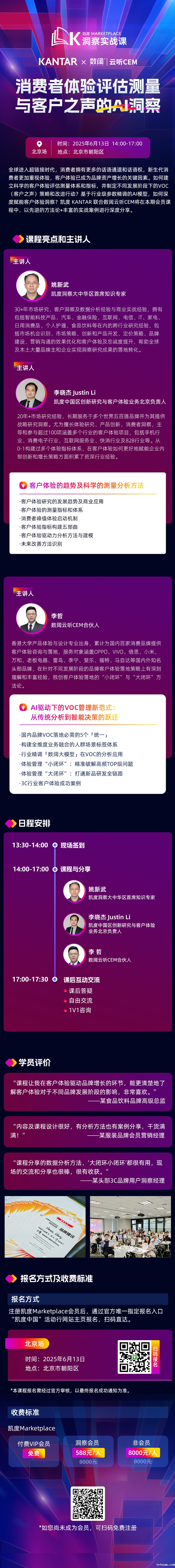 洞察实战课深圳站、上海站的成功举办引发品牌热烈反响,北京站也将于6月13日举行,报名通道现已同步开启。我们诚邀关注客户体验升级的企业决策者及产研、用研、营销负责人报名参与,一起以科学测量和AI智能分析为双轮增长引擎,抢占体验经济的制高点。